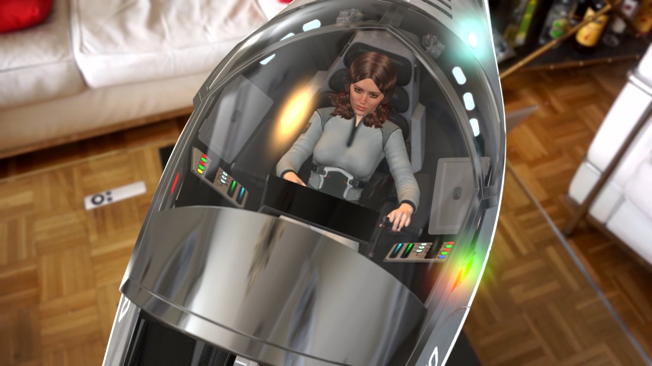 3D Computeranimation eines Spielzeugraumschiffs. TWA-Film.
